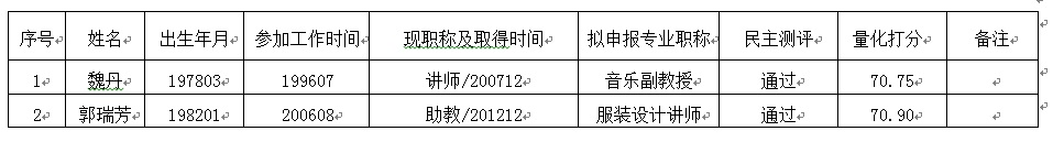 根据学院组织人事处下发的《随州职业技术学院关于开展2018年专业技术职称评审的工作方案》,严格对照《随州职业技术学院专业技术职务任职资格评审管理办法(试行)》文件中的评审标准和内容,服装与艺术设计学院于2018年11月13日召开了全体教师大会,对初审合格的申报人任现职期间的德、能、勤、绩、廉等情况进行民主测评,并于11月15日召开评审小组会,对测评合格的人员进行打分,现将申报人员测评通过和评议打分的情况进行公示,公示内容如下: