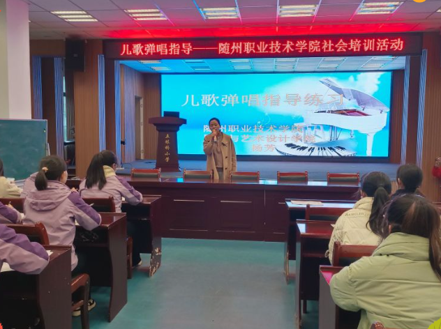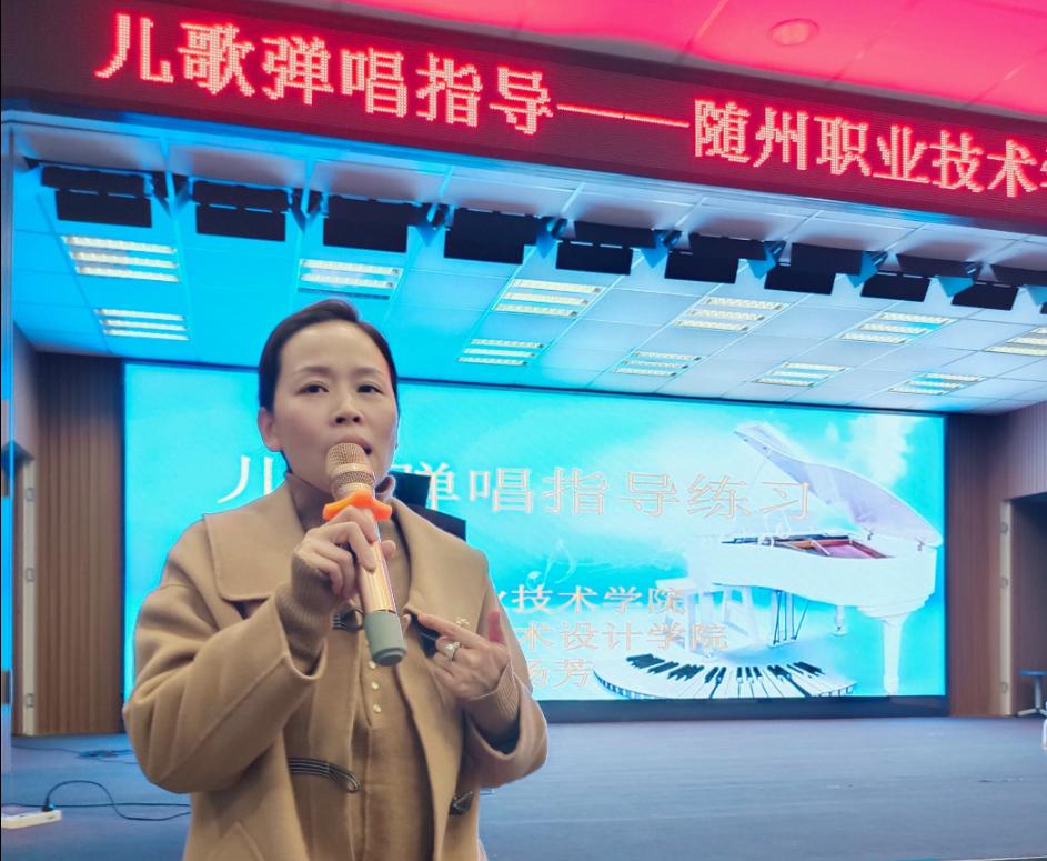 儿童歌曲弹唱是幼儿园教师必须掌握的专业技能之一,也是日常教育教学工作中必须具备的一项能力。为了提升全园教师的音乐素养,提高教师的弹唱水平,促进教师专业成长,2023年11月17日下午,随州市曾都区五眼桥小学幼儿园邀请了我院的杨芳教授为五眼桥小学幼儿园、北郊五心幼儿园,东城童欣乐幼儿园3所幼儿园的老师们开展了钢琴弹唱技能培训。