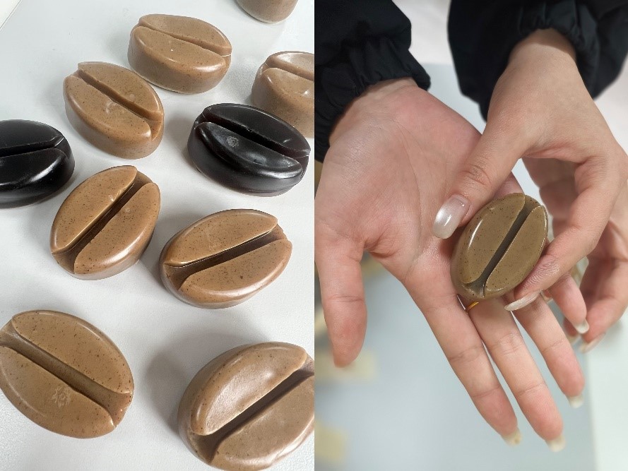 随后,备受期待的香皂制作环节正式开始。学院女教职工们纷纷化身“手工达人”,兴致勃勃地投入到香皂制作中。大家充分发挥自己的创意和想象力,将精油、色素、干花等材料巧妙搭配,制作出一个个咖啡豆形状的的手工皂。活动现场欢声笑语不断,气氛轻松愉悦。