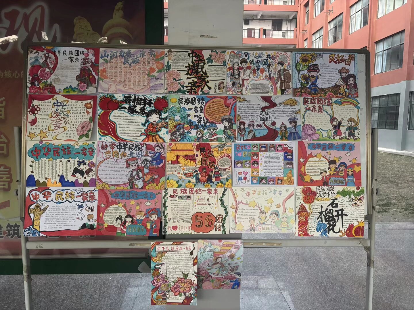 作为本次活动的亮点环节,“民族团结一家亲”主题手抄报展示吸引了众多师生驻足观看。同学们充分发挥艺术设计专业特长,以笔绘心,以画传情,创作出了一幅幅主题鲜明、构思巧妙、色彩绚丽的手抄报作品。这些作品或展现各民族灿烂的文化符号与服饰特色,或描绘各族群众携手奋进的生动场景,或摘录抒发民族团结情怀的经典语句,生动诠释了“汉族离不开少数民族,少数民族离不开汉族,各少数民族之间也相互离不开”的深刻内涵,艺术化地表达了同学们对中华民族多元一体格局的认同、对中华文化的热爱以及对民族团结和睦的珍视。