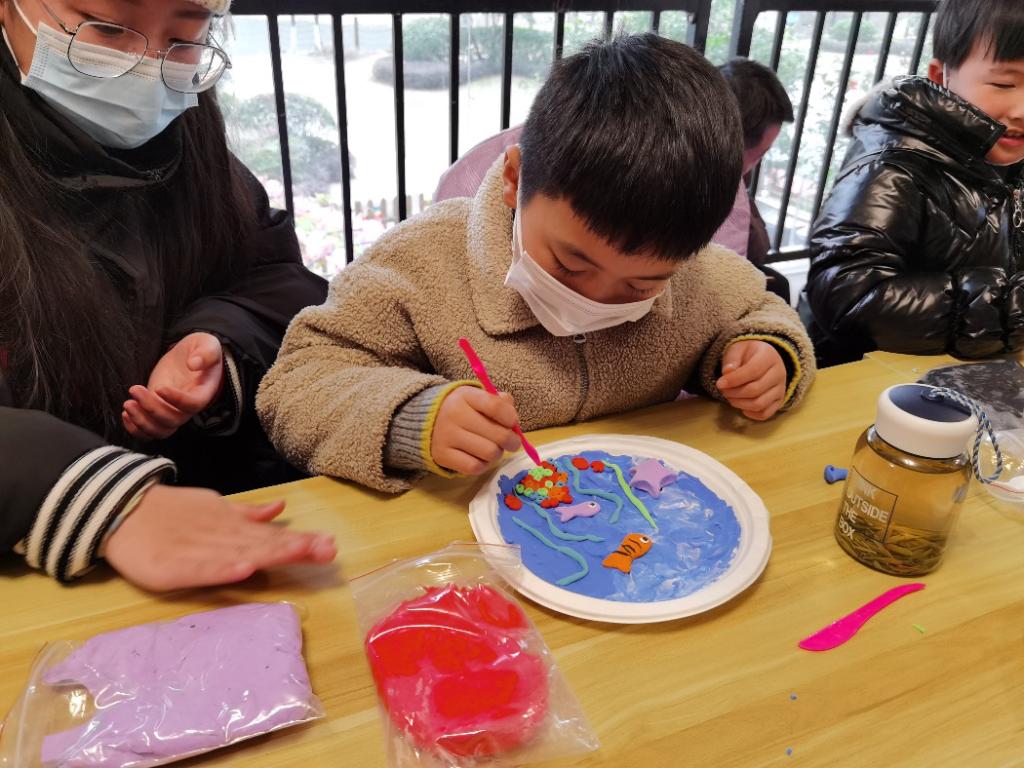 手工老师还组织现场的小朋友进行了特色手工活动,通过亲手制作海底世界,让小朋友们进一步建立保护环境是我们每个人应尽的责任的担当意识。教师党员张峥峥用生活的废弃的一次性盘子,当做展示材料,结合黏土等手工材料,带着小朋友了制作了一幅幅美丽的海底美景。