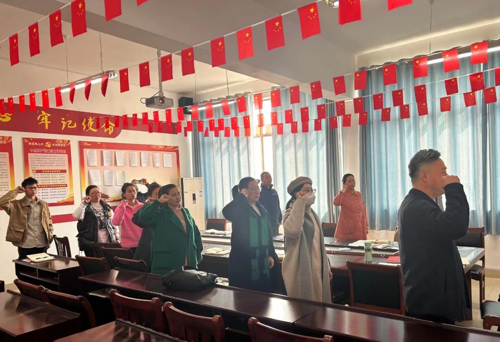 “我志愿加入中国共产党……随时准备为党和人民牺牲一切,永不叛党。”会议伊时,支部全体党员在刘鹤同志的带领下,面对鲜红的党旗和庄严的誓词,共同高举右拳,庄严宣誓。铿锵有力的宣誓,体现了大家对党的无限忠诚,热爱和听党话、跟党走的坚定决心。随后又开展党员集体过“政治生日”等活动,由王环环同志分享心得。