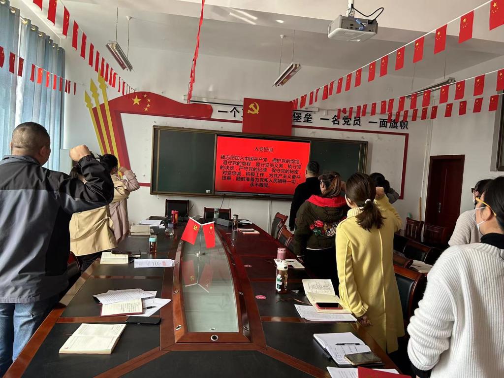 会议伊时由刘恩鹤同志带领全体党员同志面对鲜红的党旗,重温入党誓词。随后又开展党员集体过“政治生日”等活动,由刘芬同志分享心得。
