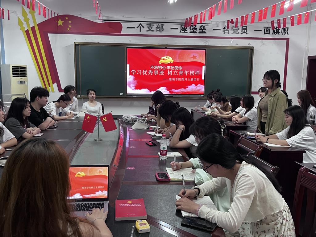 2023年4月20日晚上6:00服装艺术设计学院开展了“学习优秀事迹 树立青年榜样 “的主题团日活动。