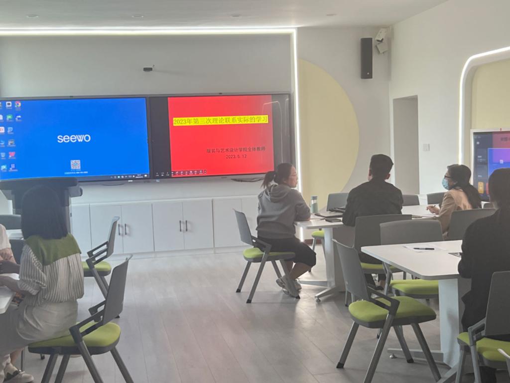 5月12日下午,服装与艺术设计学院本学期的第三次理论联系实际的学习于思诚楼1416会议室如期开展,第三次理论联系实际的学习内容为,大家集中学习校党委书记、党的二十大宣讲团团长马大奎同志于2023年2月22日在我校进行的主题为《深学细研党的二十大精神扎实推进学校高质量发展》的讲座内容。
