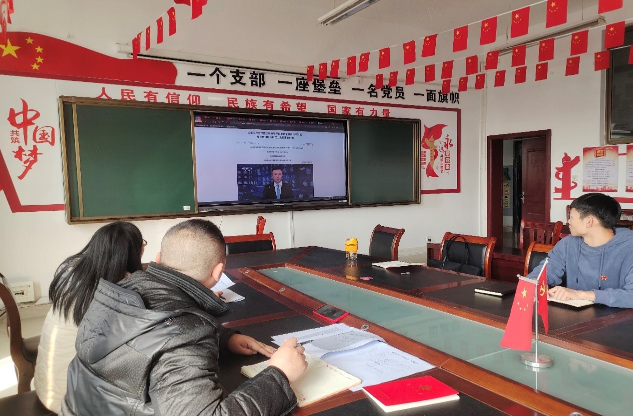 会议伊始由张亦飞同志带领全体党员同志面对鲜红的党旗,重温入党誓词。