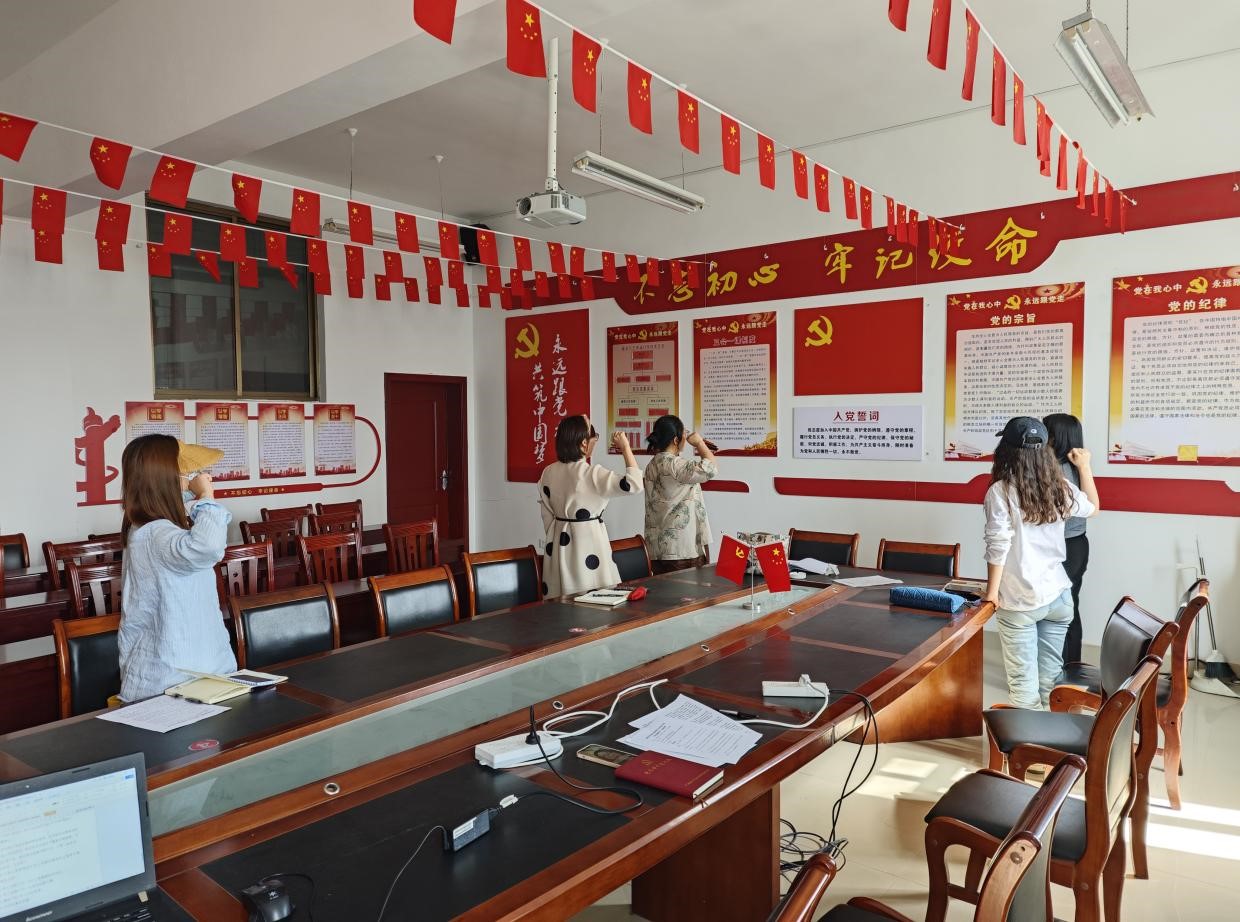会议伊始由刘芬同志带领全体党员同志面对鲜红的党旗,重温入党誓词。