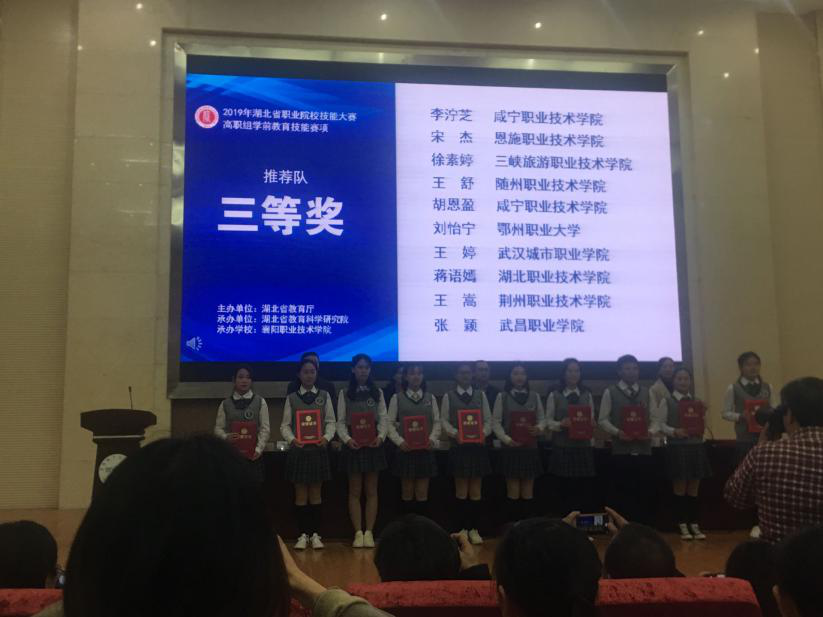 2019年湖北省职业院校技能大赛(高职组)学前教育赛项于11月24日在襄阳职业技术学院圆满落幕,我院学前教育专业参赛选手在比赛中荣获抽测组二等奖,推荐组三等奖的佳绩。