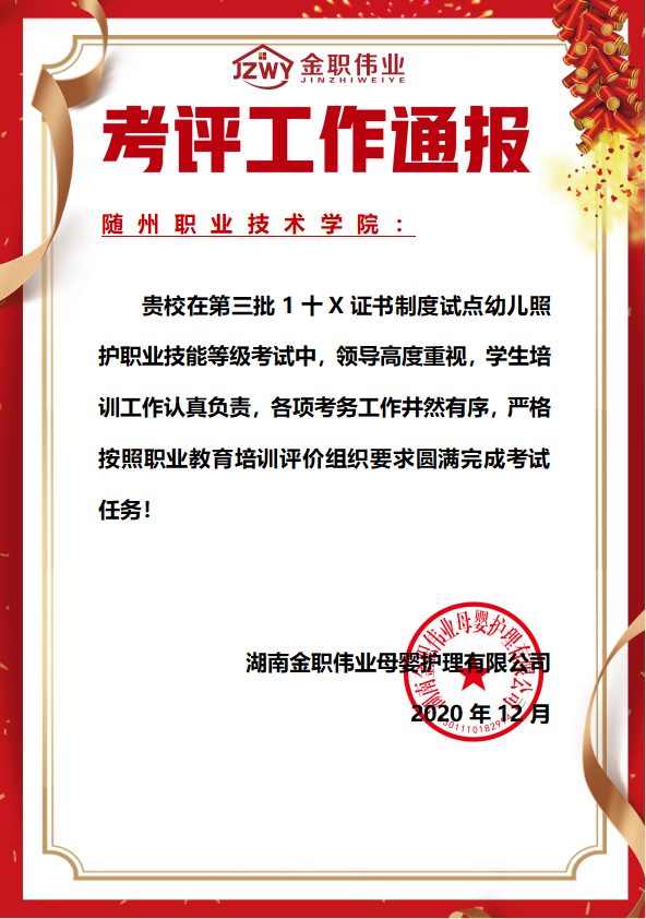随州职业技术学院首次1+X幼儿照护职业技能等级证书考试圆满结束