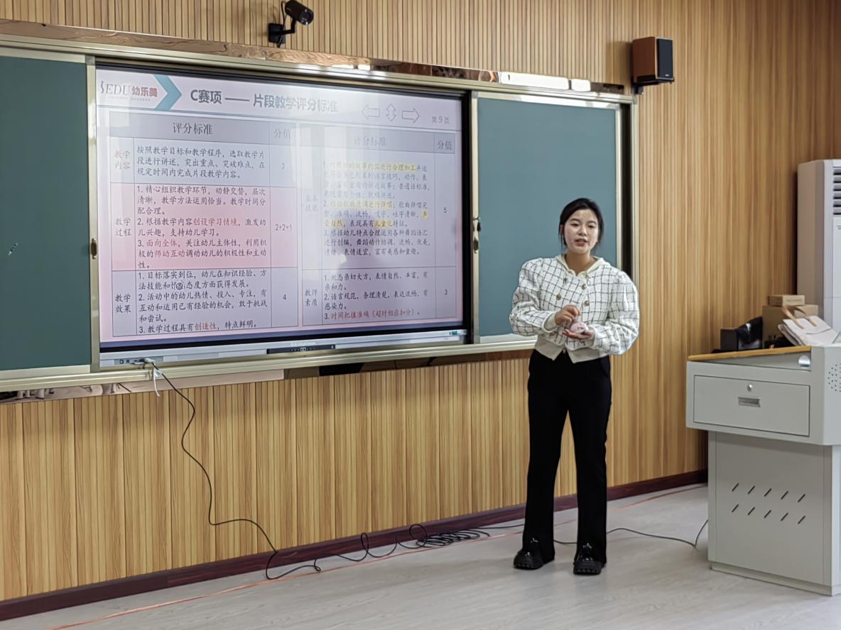 向老师是作为学前教育专业选手参加去年国赛的种子选手。她精心准备了详实而丰富的PPT演示稿,深入浅出地分析了大赛各个环节应该注意的问题,并提出了具体的建设性意见。最后在现场观摩了我院备选选手的演练时,她也充分肯定了选手的优势,分析了应该要注意的细节问题,还和选手们进行了面对面的沟通与交流。