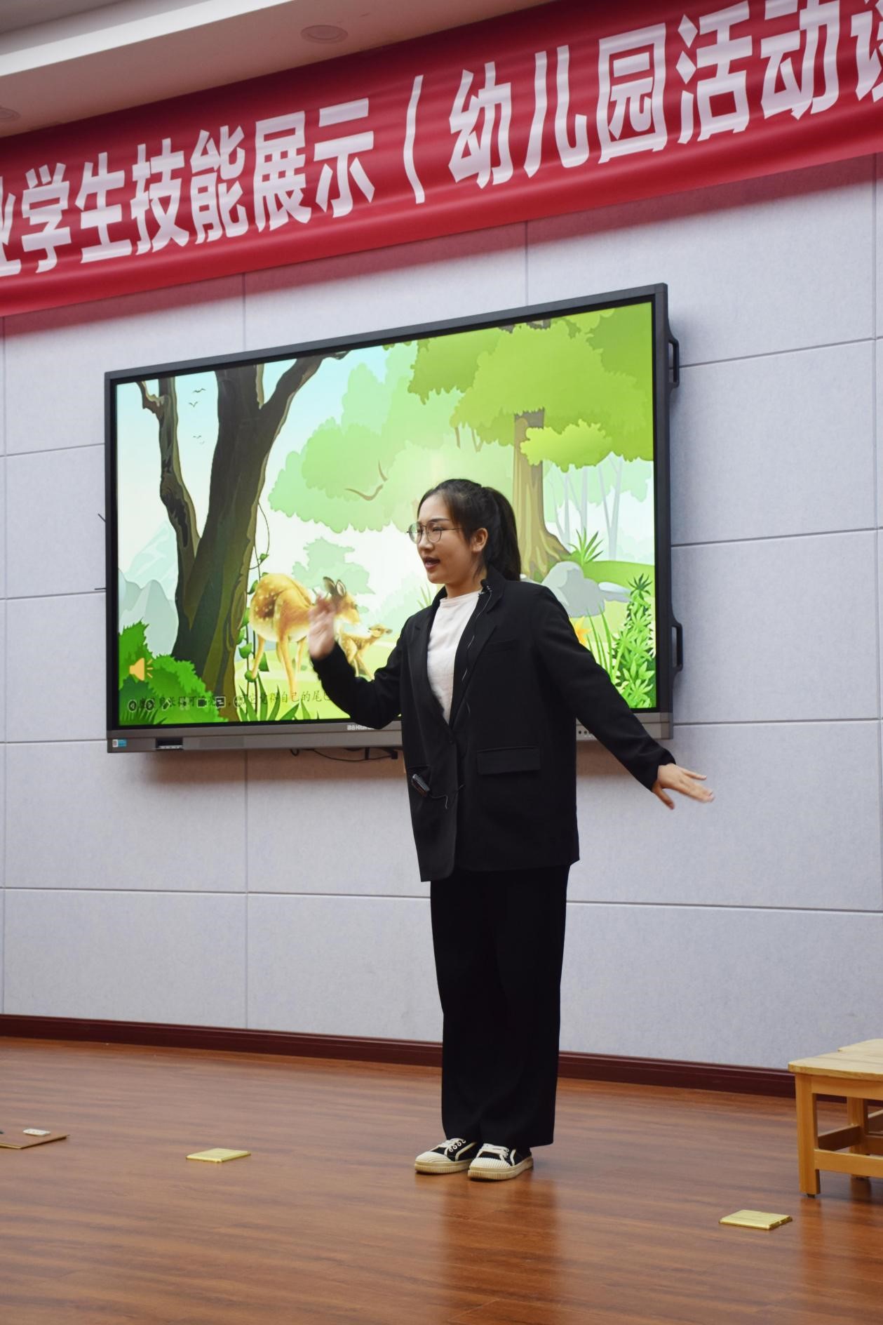 经学前教育理论教研组评委选拔出来的8位说课学生代表,围绕“动物王国”素材开展主题设计活动,学生分别从幼儿园五大领域(语言、科学、艺术、社会、健康)进行说课展示,从设计意图到课件的使用,教学目标制定到重难点把握,教学方法的选择到教学流程的预设,都精彩呈现,充分体现了学生平时对各课程的掌握和理解,展示现场互动与掌声不断。