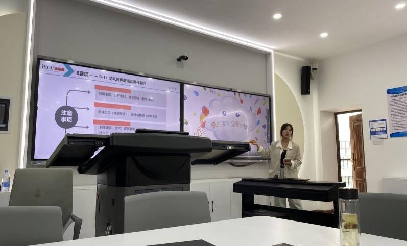 2023年10月12日,服装与艺术设计学院在1512虚拟仿真实训室召开了湖北省高职院校技能大赛幼儿教育赛项专题培训活动。此次活动特邀2022年全国职业院校技能大赛高职组一等奖获得者、幼乐美技能大赛职业培训师——相冰洁老师来为该赛项备赛师生进行培训。服装与艺术设计学院总书记、院长杨芳出席会议,并对此次活动做出了强调。