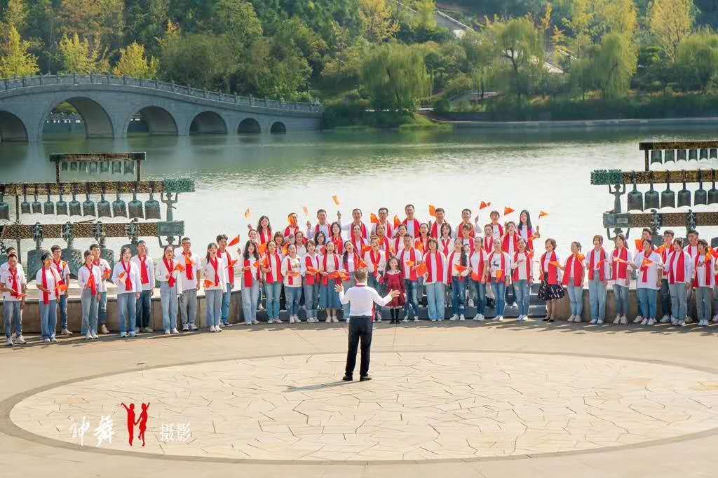 为庆祝中华人民共和国成立71周年,9月30日10点,随州职业技术学院60余名师生齐聚随州文化公园编钟广场,用歌声的方式表白祖国。