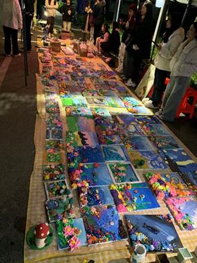 当天活动现场,同学们分工明确,各司其职,有序的安排每位想要献爱心的同学。一幅幅画,一个个陶艺作品全是我院学生的心血之作,志愿者们会将这些手工作品进行义卖,并将义卖所得捐献给特殊学校的儿童们,为他们的学习和生活尽献绵薄之力。
