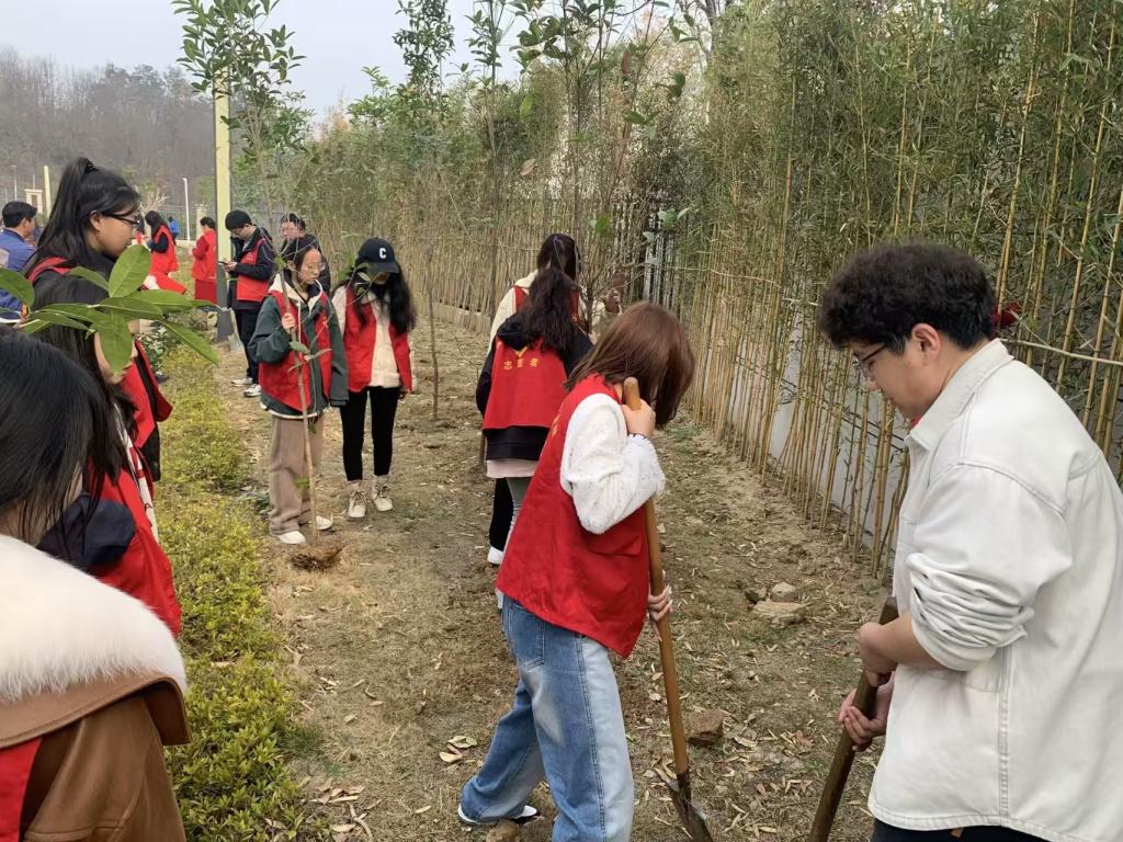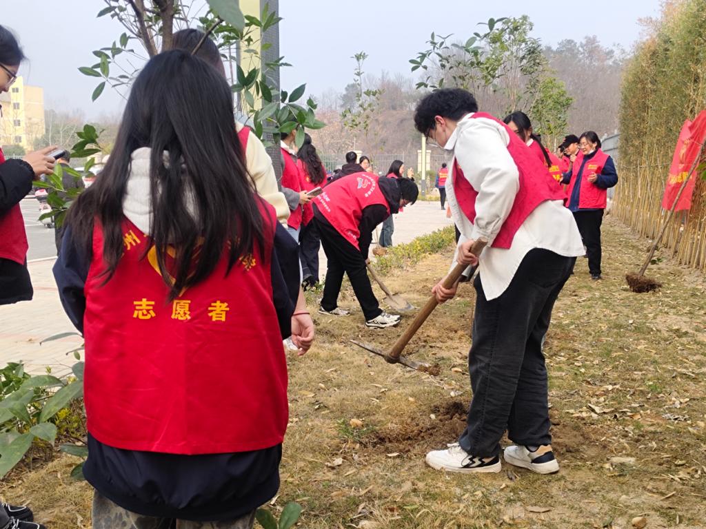 2025年3月12日上午九点服装与艺术设计学院学生会成员前往风光社区开展以“‘植’此青绿,不负青光”为主题的植树活动。此次活动是为了倡导环保意识,提高学生和社区居民对环境保护的重视。通过本次植树活动,美化社区环境,为居民创造更舒适的生活空间。也培养了学生的团队合作精神和社会责任感。