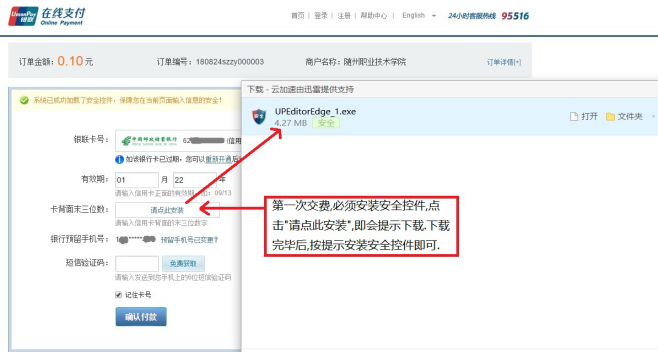 第九步:第一次银联在线支付学费,需安装安全控件。