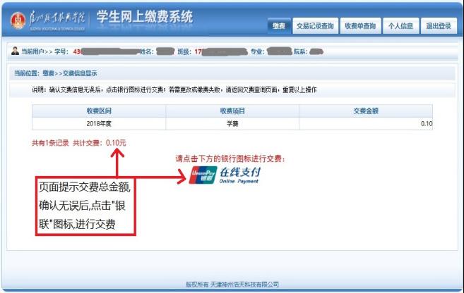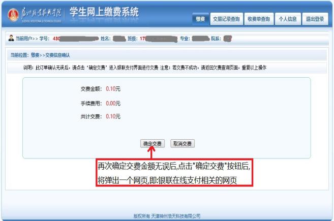 第十二步:随州职业技术学院学生网上缴费成功的提示页面。