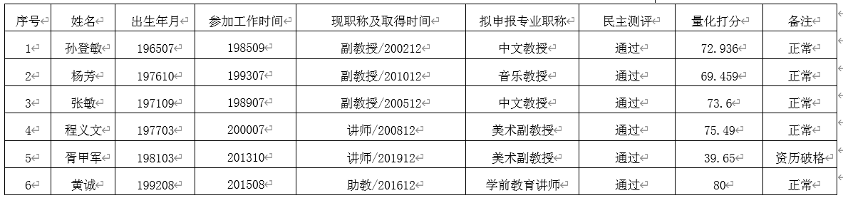 根据学院组织人事处下发的《随州职业技术学院关于开展2021年专业技术职称评审的工作方案》,严格对照随职院党[2021]16号文件《随州职业技术学院专业技术职务任职资格评审管理办法(试行)》文件中的评审标准和内容,服装与艺术设计学院于2021年11月19日召开了全体教师大会,对初审合格的申报人任现职期间的德、能、勤、绩、廉等情况进行民主测评,并于11月20日召开评审小组会,对测评合格的人员进行打分,现将申报人员测评通过和评议打分的情况进行公示,公示内容如下: