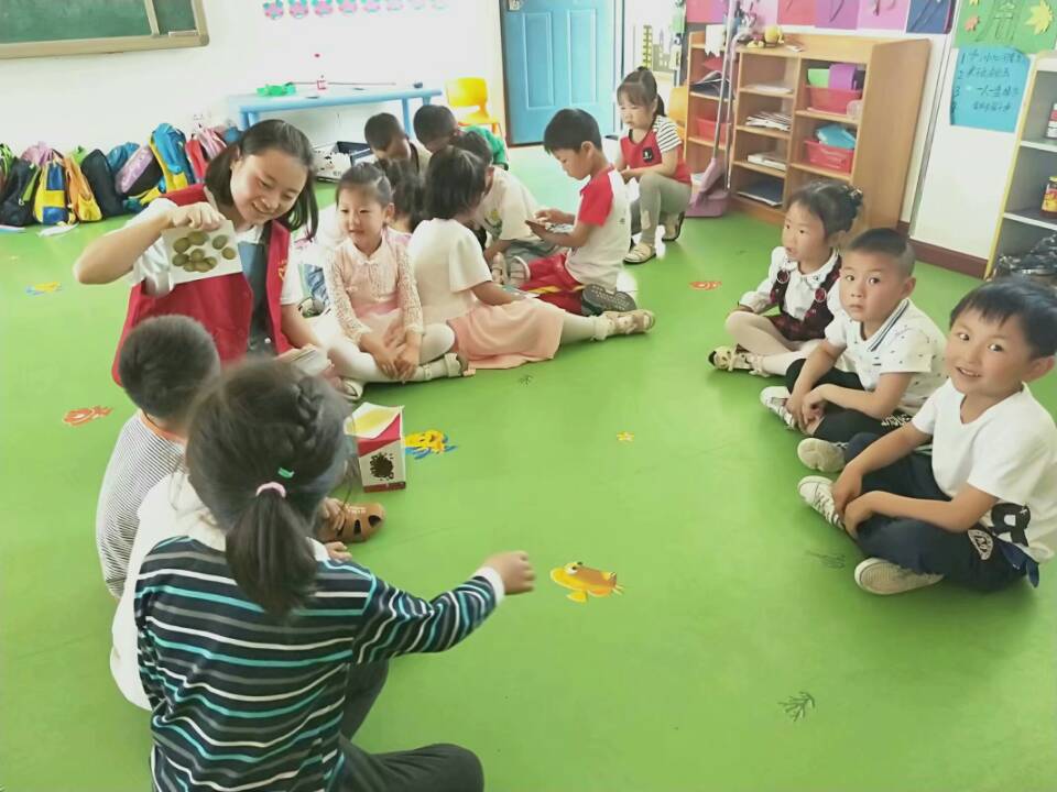 14:00左右到达幼儿园,全体师生迅速进入工作状态,小一班里面,支教学生王曼精心准备了课堂教具向小朋友讲解,认真的样子十足像一位老师。而孩子们坐在下面认真且好奇地听着老师讲的每一句话,待老师提出问题大家又非常积极地举手,生怕自己被老师落下了。甚至有一位小朋友因为自己没有被老师叫到台上玩游戏而哭诉,好一个感动的场面。
