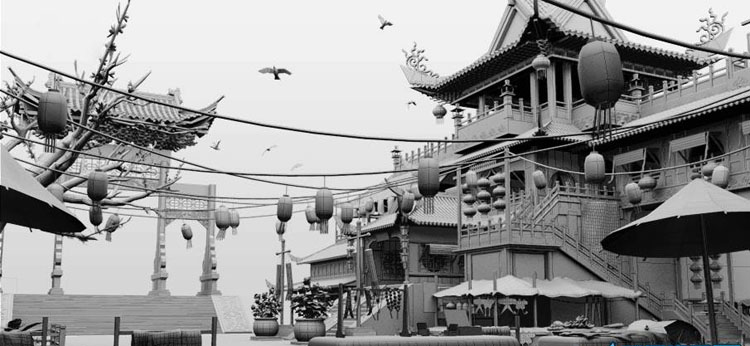 大型古城市场景建筑