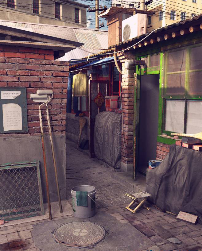 农家弄堂小砖平房一角(动漫学生作品)